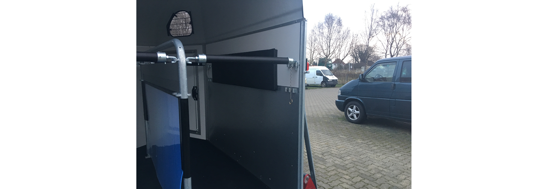Mitteltrennwand aus klarsicht-PVC,, Aluboden; serienmäßig, Rampen-Tür-System